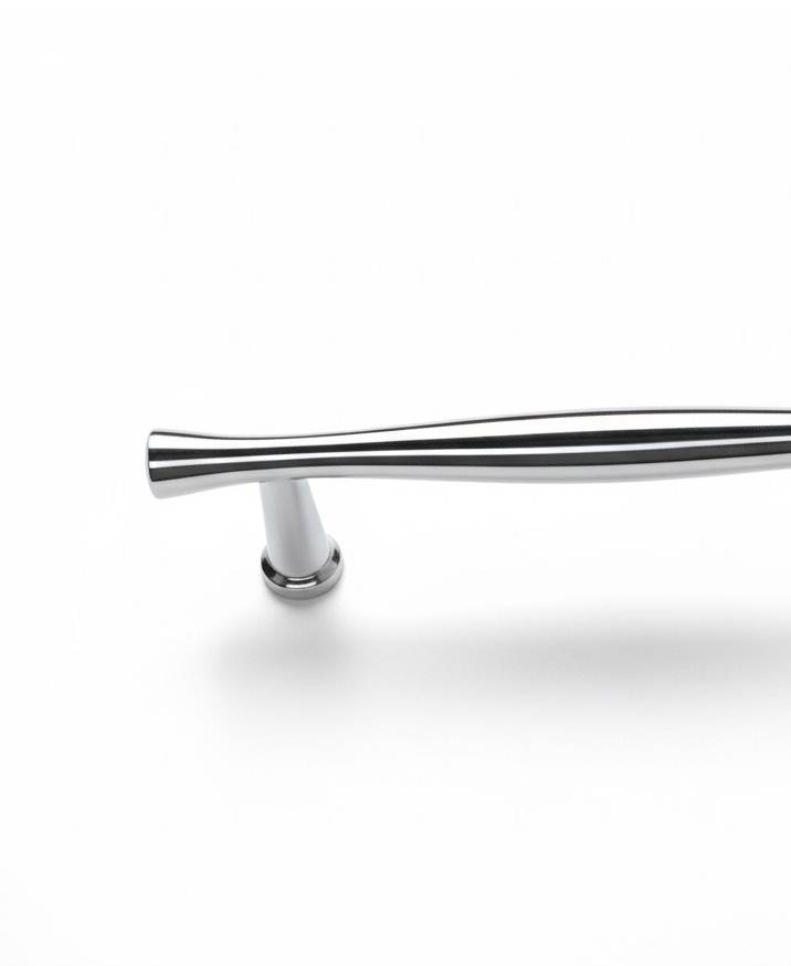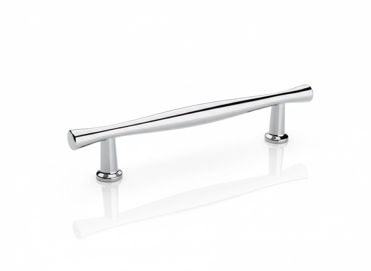 The 329 Designer Almirah Handle from the Rajput Group of Industries offers a modern reinterpretation of the classic spindle design. Its sleek, straight body flares gracefully at the ends into minimalist pedestal mounts, providing a sophisticated touch for high-end wardrobes and contemporary cabinetry.
