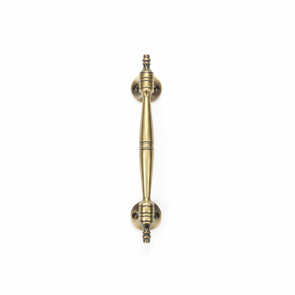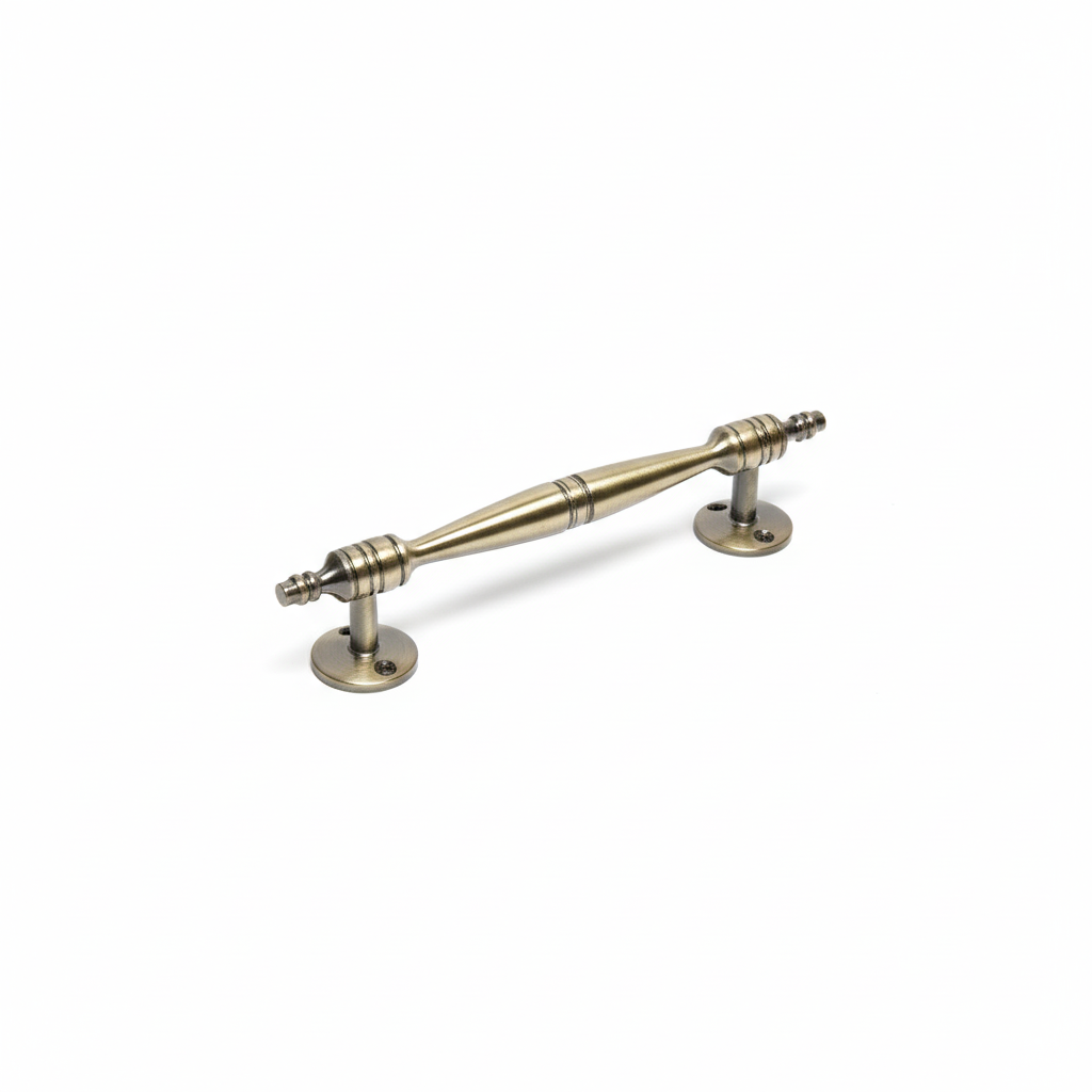 The 407 Designer Almirah Handle by Rajput Group of Industries is a beautifully crafted hardware piece designed for classic and vintage interiors. Made from high-grade aluminium, this handle features a distinctive spindle-shaped grip with decorative ring accents and traditional circular mounting plates. Its timeless design makes it a perfect choice for luxury wardrobes, cabinets, and traditional wooden almirahs.