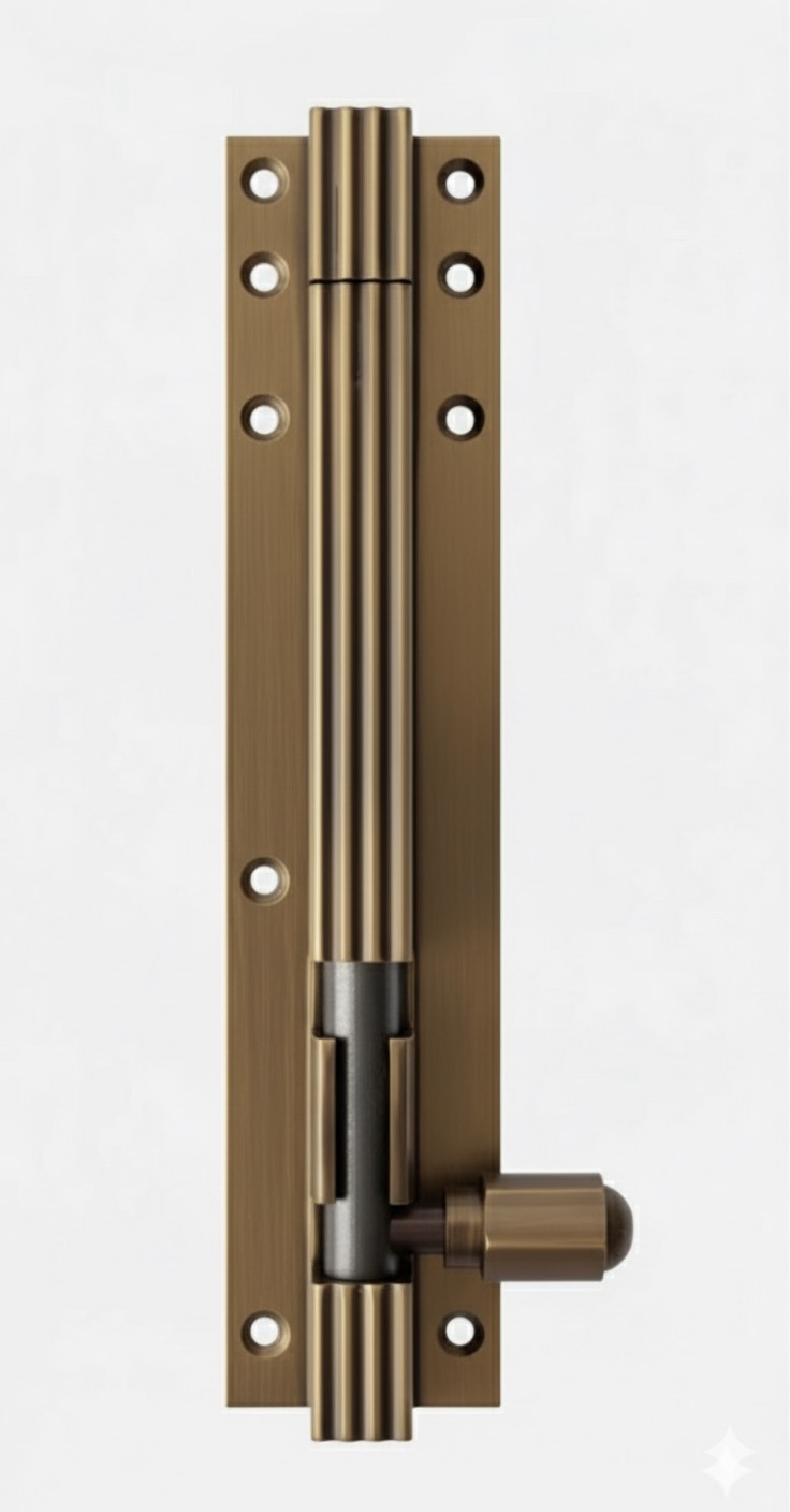The TBSSS Tower Bolt is a premium-grade security fitting designed to deliver uncompromising strength with a refined industrial character. Its defining feature is the distinctive grooved sliding rod, a detail that enhances grip while giving the bolt a bold, modern mechanical appeal—similar to the image of a grooved steel bar seen in industrial hardware designs.